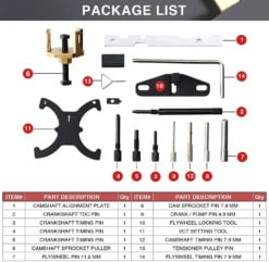 Thông số kĩ thuật Bộ dụng cụ đặt cam Ford, Mazda