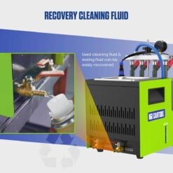 - Hiệu quả, tiết kiệm thời gian: Bình chứa dung dịch vệ sinh dung tích lớn 1300ml, 4 ống xy lanh thể tích 180ml, cho phép làm sạch 4 kim phun cùng lúc. Chất lỏng dùng để vệ sinh được đun nóng đến 45°C, cho hiệu quả làm sạch tốt hơn.
